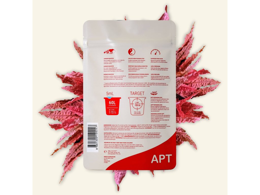 Doplňuje všechny životně důležité minerály ve vodě RO/RODI bez negativních změn NPK, KH nebo pH. Umožňuje krevetkám a rostlinám z tvrdých vod
