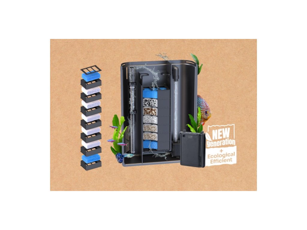 NOVÁ GENERACI VNITŘNÍ FILTRACEBIOBOX Nová generace - velmi účinný kompaktní systém vnitřní filtrace vybavený modulární filtrací B-BOX, který provádí biologickou, chemickou a mechanickou filtraci, důkladně čistí vodu a zachycuje látky, které mohou být škodlivé pro ryby a rostliny. Tento filtr je také vybaven vodním čerpadlem EasyFlux a ohřívačem EasyKlim. |