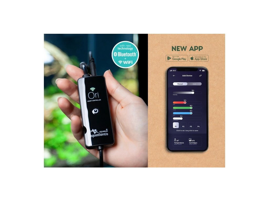NOVÉ CHYTRÉ OVLÁDÁNÍ V APLIKACI - ORIInteligentní ovladač ORI - je zařízení typu „vše v jednom“, které je součástí našich RGBW osvětlovacích jednotek a nabízí širokou škálu funkcí pro optimalizaci správy vašeho akvária. Tento všestranný ovladač podporuje připojení Wi-Fi i Bluetooth, což umožňuje bezproblémové ovládání osvětlení akvária. Stačí si zdarma stáhnout aplikaci ORI, která vám zefektivní údržbu akvária a vylepší celkový zážitek. |