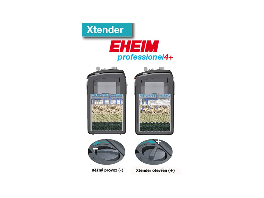 Silný výkon, optimální účinnost, tichý chod, samonasávání, hadicový adaptér s pojistkou a mnoho dalších předností převzala čtvrtá řada filtrů Eheim professionel od řady předchozí. Novinkou je "Xtender": pokud jsou filtrační média znečištěna a dochází tak k poklesu průtoku, je možné jej v případě potřeby upravit. Filtr není nutné ihned vyčistit a získáte tak několik dní až do okamžiku, kdy už je proprání filtračních médií nezbytné. Díky stálému průtoku vody však zůstane biologická filtrace po celou dobu nenarušena.