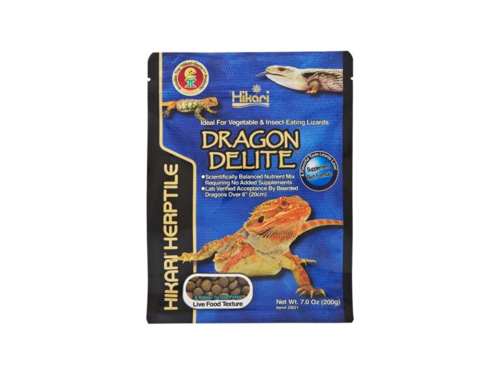 HIKARI Dragon Delite představuje vědecky vyvinuté, kompletní krmivo pro ještěry živící se hmyzem a rostlinnou stravou (všežravci), jako jsou dospělé agamy vousaté. Tyto unikátní hydratační pelety podporují nejen optimální výživu, ale i zdravé trávení a čistotu terária.
