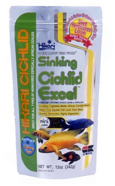 Hikari Sinking Cichlid Excel je špičkové denní potápějící se krmivo navržené speciálně pro býložravé (rostlinožravé) cichlidy a větší tropické ryby s vyšší potřebou rostlinných látek.