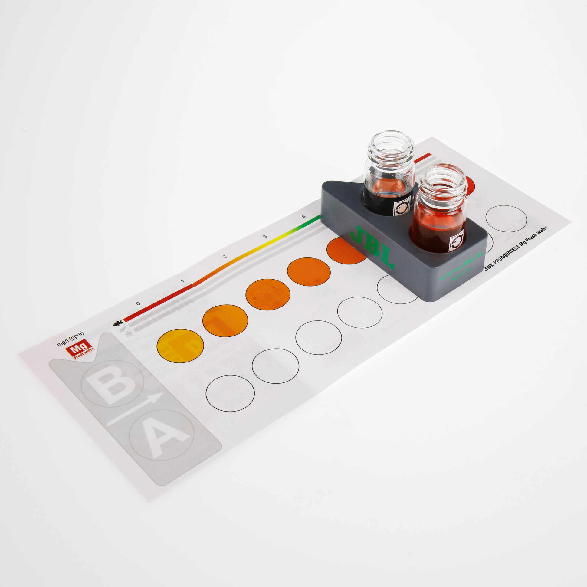 Obsah hořčíku ve většině kohoutkových vod je pro akvarijní rostliny velmi nízký, což vede k jeho deficitu, i když pravidelně hnojíte. JBL Mg Test vám umožní přesně stanovit optimální hodnotu a kontrolovat dávkování hnojiv.