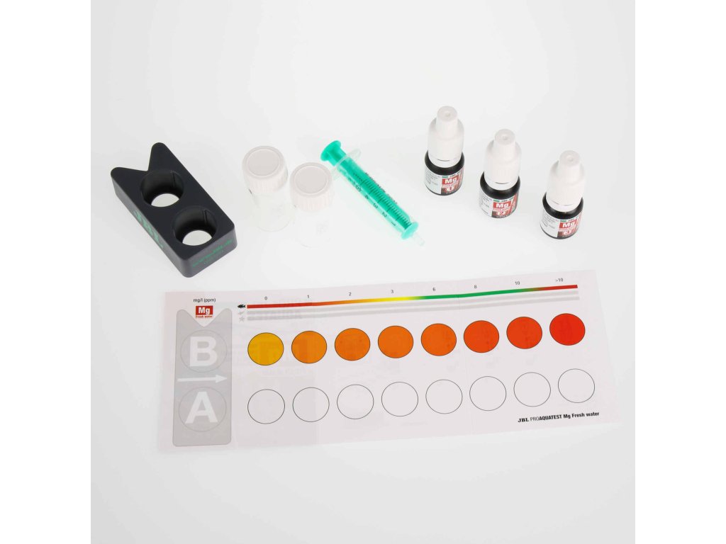 Obsah hořčíku ve většině kohoutkových vod je pro akvarijní rostliny velmi nízký, což vede k jeho deficitu, i když pravidelně hnojíte. JBL Mg Test vám umožní přesně stanovit optimální hodnotu a kontrolovat dávkování hnojiv.