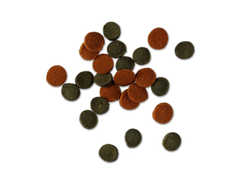 - Kombinované krmivo - zelené a hnědé tablety, pro ryby žijící u dna a korýše.