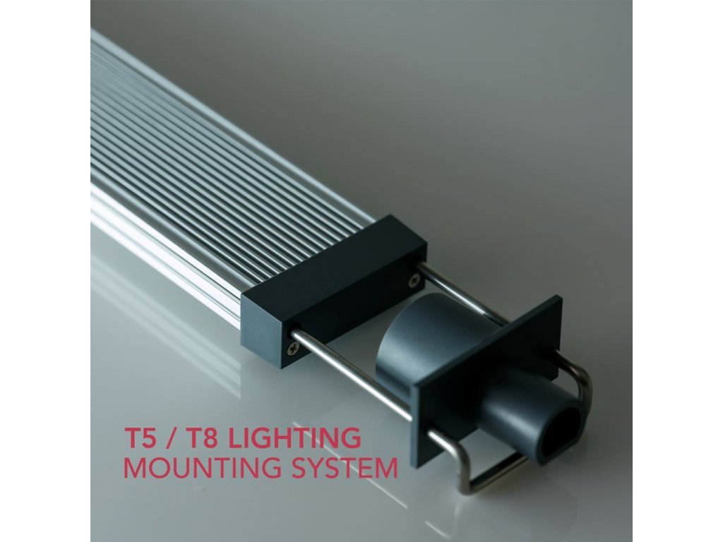 Odolnost a design: Elegantní, tenký profil kompatibilní s T5 a T8 osvětlením, robustní, vodotěsné provedení.