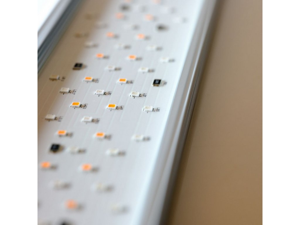 TWINSTAR E-Line IV představuje zásadní technologický skok. Namísto běžných bílých LED využívá inovativní oranžové diody, které v kombinaci s RGB čipy vytvářejí optimalizované spektrum přímo pro potřeby rostlinné fotosyntézy a estetiku akvária. Výsledkem je vizuálně teplejší, ale extrémně jasné světlo, které vybudí rostliny k okamžité aktivitě.